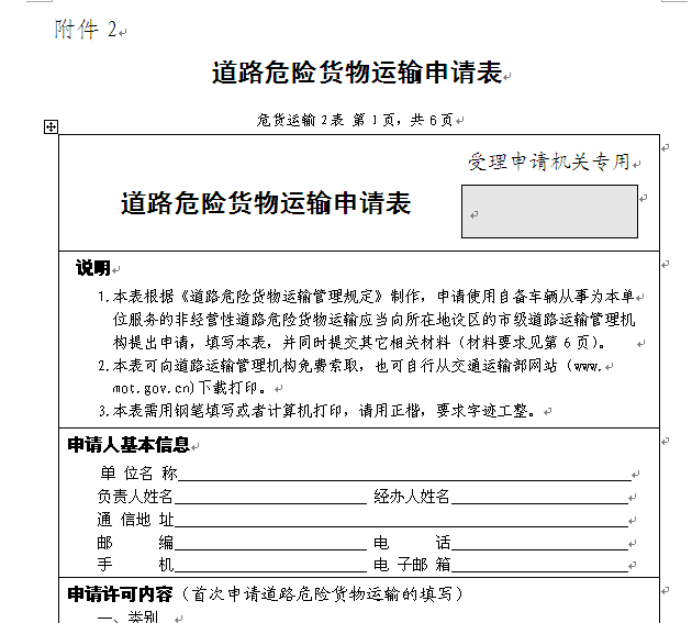 道路危险货物运输申请表