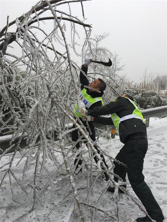 1月4日,酉阳县公路路政执法人员在S210线鹿角坪至毛坝段,清除被冰雪压弯的行道树。庹飞 摄 受北方强冷空气南下影响,1月3日夜间,酉阳县气温骤降,境内高海拔地区公路发生道路结冰现象。酉阳县公路路政管理大队立即启动相关应急预案确保公路畅通。 鹿角坪:撒盐融冰 1月4日,酉阳县公路路政管理大队执法人员和酉阳县养护二段工作人员到S210线鹿角坪至毛坝段进行养护联合巡查,发现该路段已出现结冰现象,部分车辆滞留在路上,严重影响了公路的安全畅通。路政、养护工作人员立刻进入角色,拉响警笛,配合养护部门撒盐车开展融冰工作,投入到抗凝保畅的战斗之中。 及时清理伏倒的行道树 在开展融冰工作的同时,在75k+900m处,路政执法人员发现有多棵行道树被冰雪压弯,伏倒在公路路面上。为了不影响公路的正常通行,路政执法人员冒着严寒低温,立刻将伏倒在公路上的行道树清理出行车路面。当日在S210线共计清除倒伏的行道树10余棵,有效保障了公路通行安全。 经过酉阳县公路路政管理大队执法人员和酉阳县养护部门2个多小时的辛苦工作,凝冻严重的路段冰雪已基本消融。到上午11时,所有结冰路段全部放行通车。(庹飞) ?? | |||||